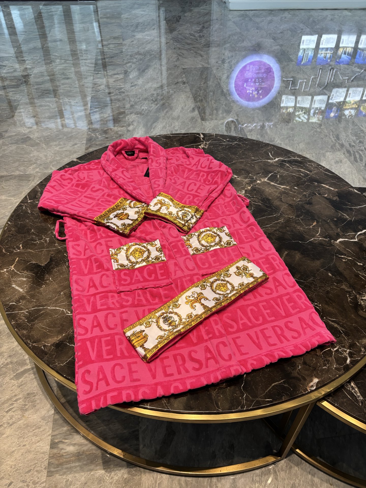 Versace pure cotton pink bathrobe new product · exclusive background